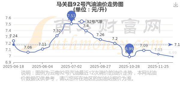 馬關(guān)縣92號汽油歷史油價走勢圖