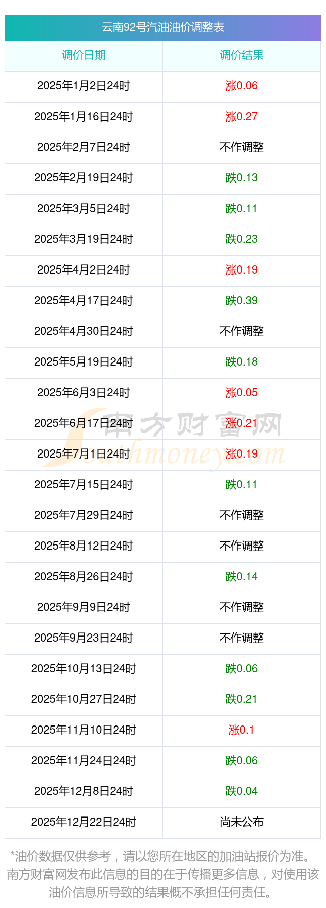 2025年該省油價調(diào)整日歷表