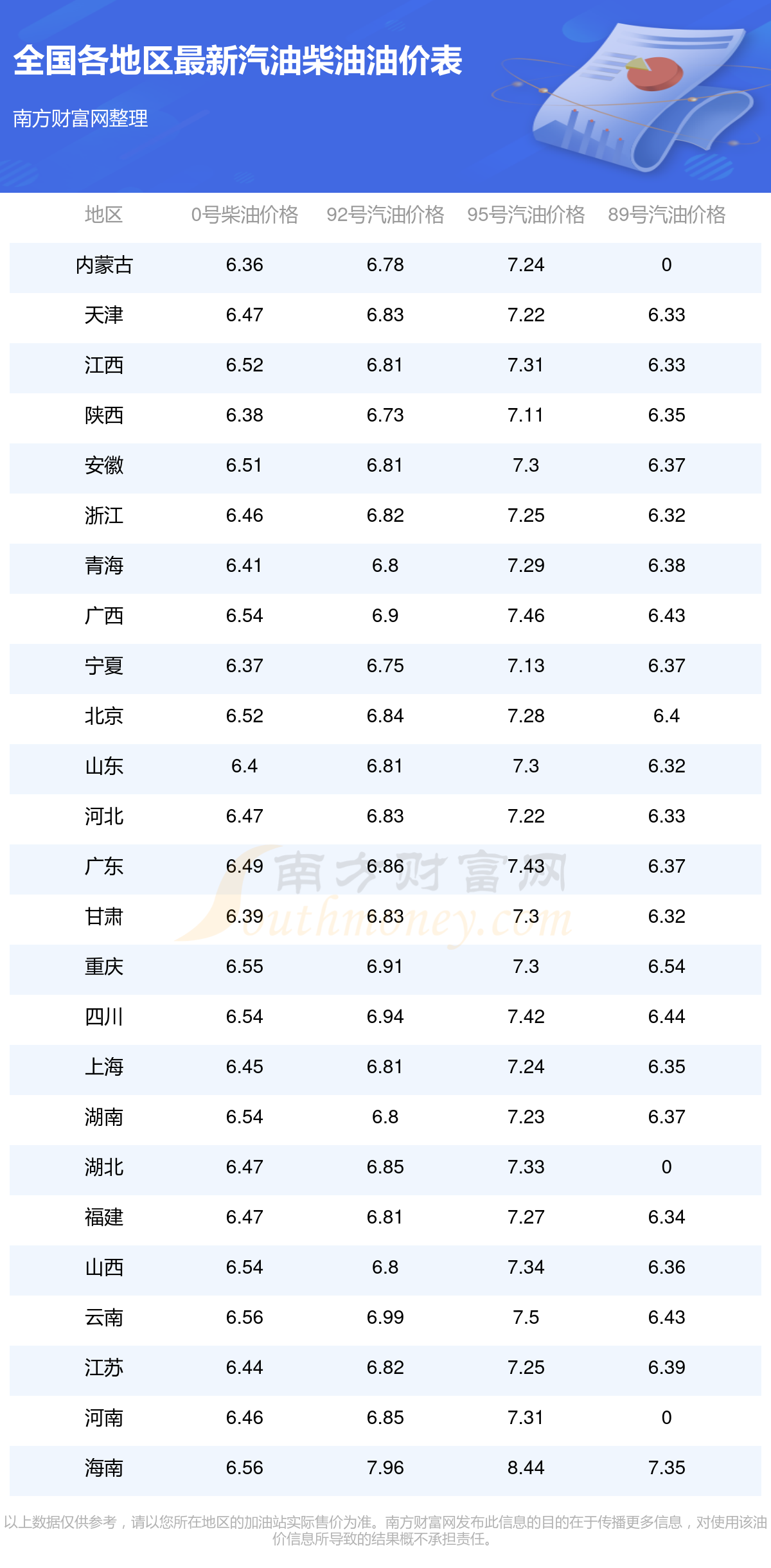 2025年12月14日全國油價調(diào)整及最新汽油價格表