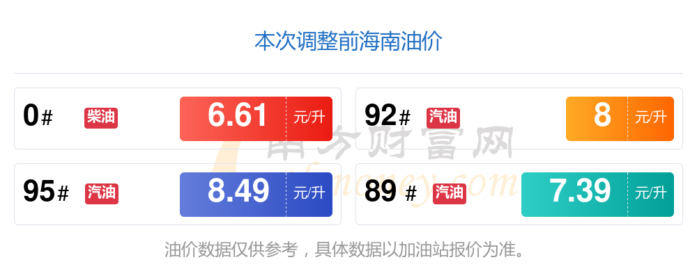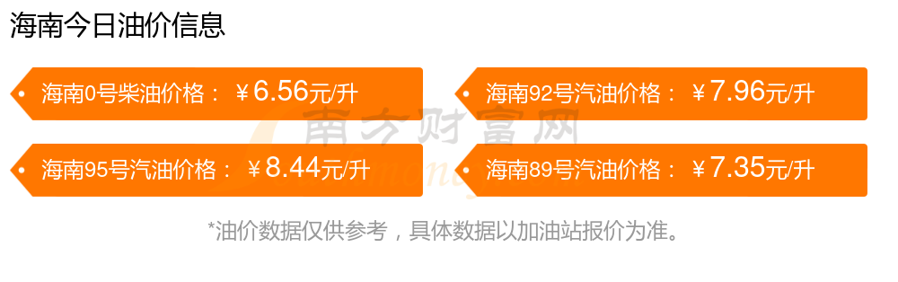 海南95號(hào)汽油油價(jià)調(diào)整表