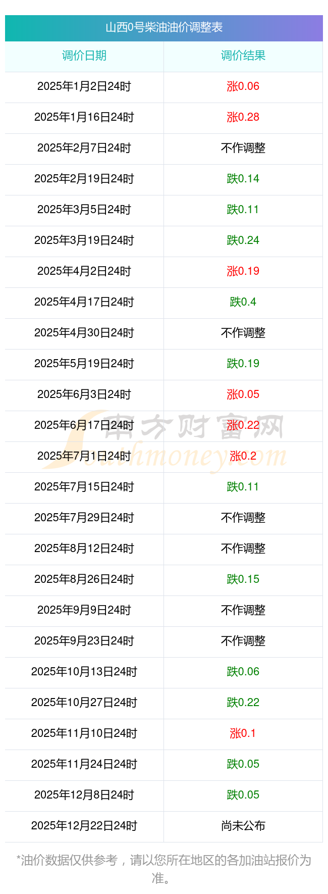 2025年山西汽油價(jià)格調(diào)整一覽表