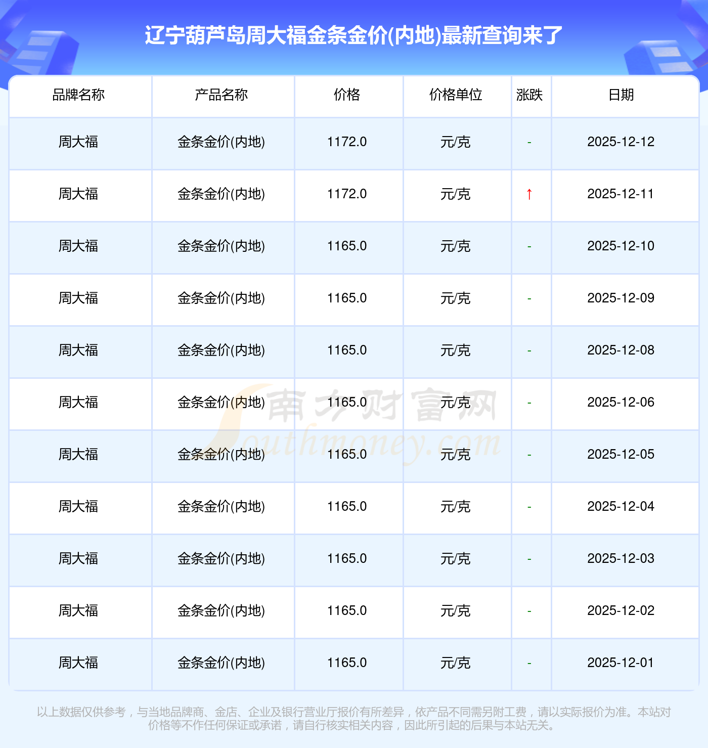 2025年12月13日,周大福、周大福、老鳳祥、老鳳祥、老廟、老廟、周生生、周生生、周大福、周大福、周大福等各大金店品牌金條金價(jià)(內(nèi)地)今日價(jià)格如下:周大福1336.0元/克、周大福681.0元/克、老鳳祥1337.0元/克、老鳳祥650.0元/克、老廟1339.0元/克、老廟600.0元/克、周生生1338.0元/克、周生生681.0元/克、周大福1336.0元/克、周大福47410.0、周大福19550.0。