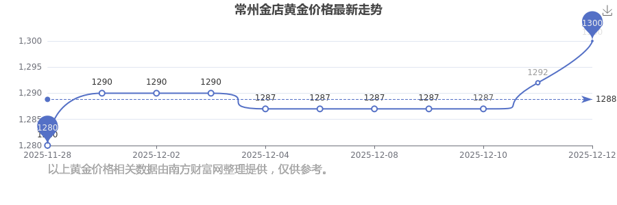 想了解此刻黃金價格,今天黃金一克的售價為多少?黃金每克的價錢通常來說是多少左右?1300.0元/克成為常州金店今日 黃金價格的最新交易的價格。