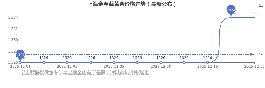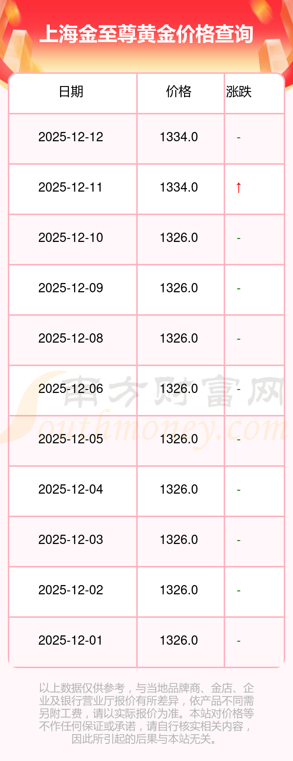 今日(2025年12月13日)上海金至尊黃金價格為1334.0元/克。