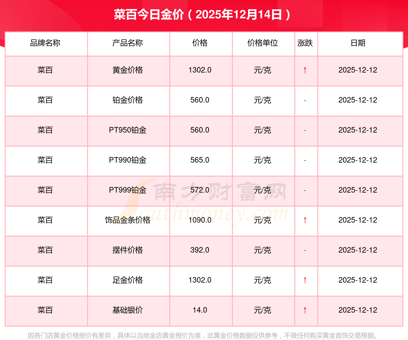 現(xiàn)在菜百黃金價(jià)格是多少錢1克_2025年菜百今日金價(jià)是多少錢一克,最新菜百查詢,2025年12月14日菜百飾品金條價(jià)格現(xiàn)在每克多少錢?最新菜百飾品金條價(jià)格報(bào)價(jià)公布,一起來看看吧!