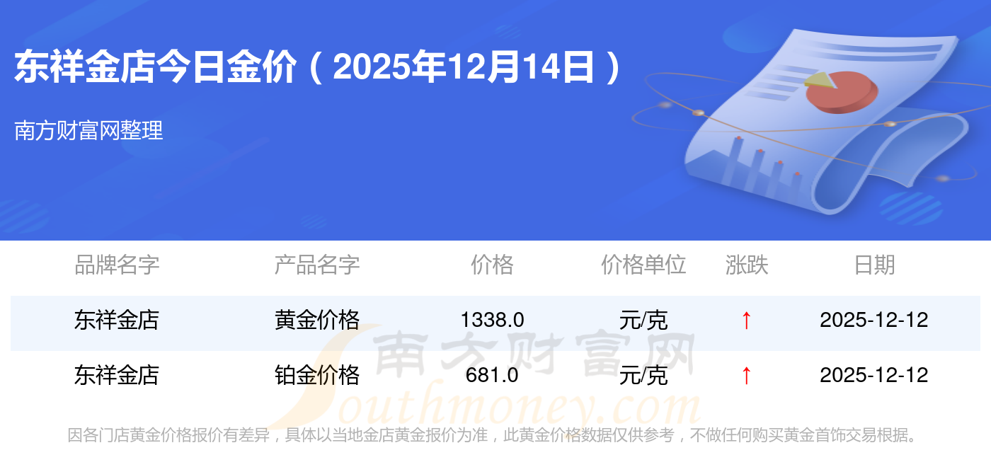 2025年12月14日東祥金店最新價格:黃金價格1336.0元/克,鉑金價格681.0元/克,黃金價格1337.0元/克,鉑金價格650.0元/克,黃金價格1339.0元/克,鉑金價格600.0元/克,黃金價格1338.0元/克,鉑金價格681.0元/克,飾品金價(內(nèi)地)1336.0元/克,黃金飾品(香港)47410.0,鉑金價格(香港)19550.0。