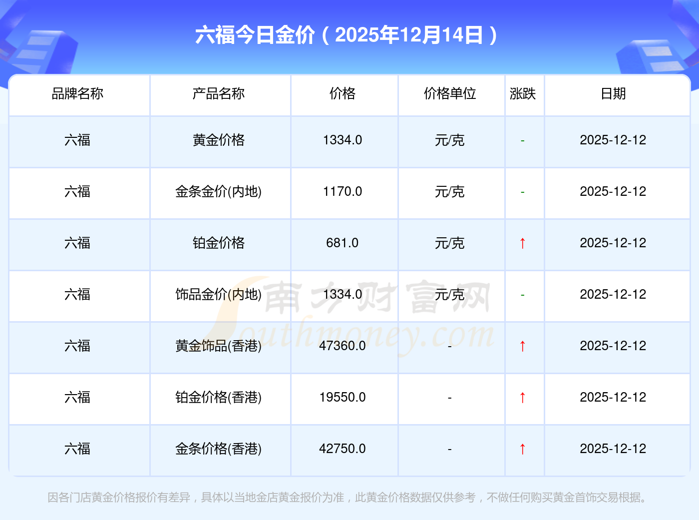 2025年12月14日六福黃金價(jià)格表_六福金價(jià)多少錢一克,一起來看看吧!