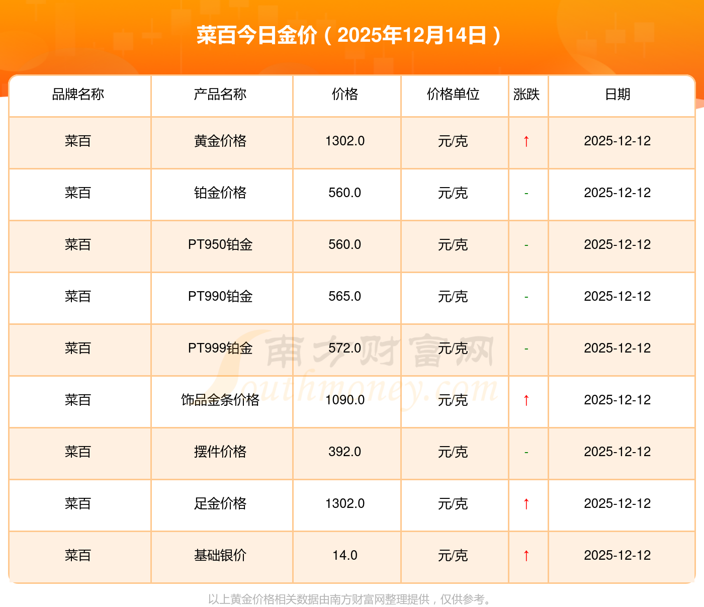 菜百金價多少錢一克