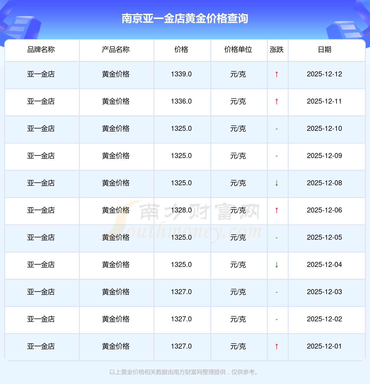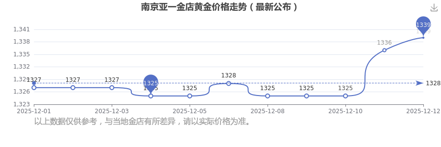 今日(2025年12月14日),1339.0元/克是南京亞一金店黃金價格的價格標準。