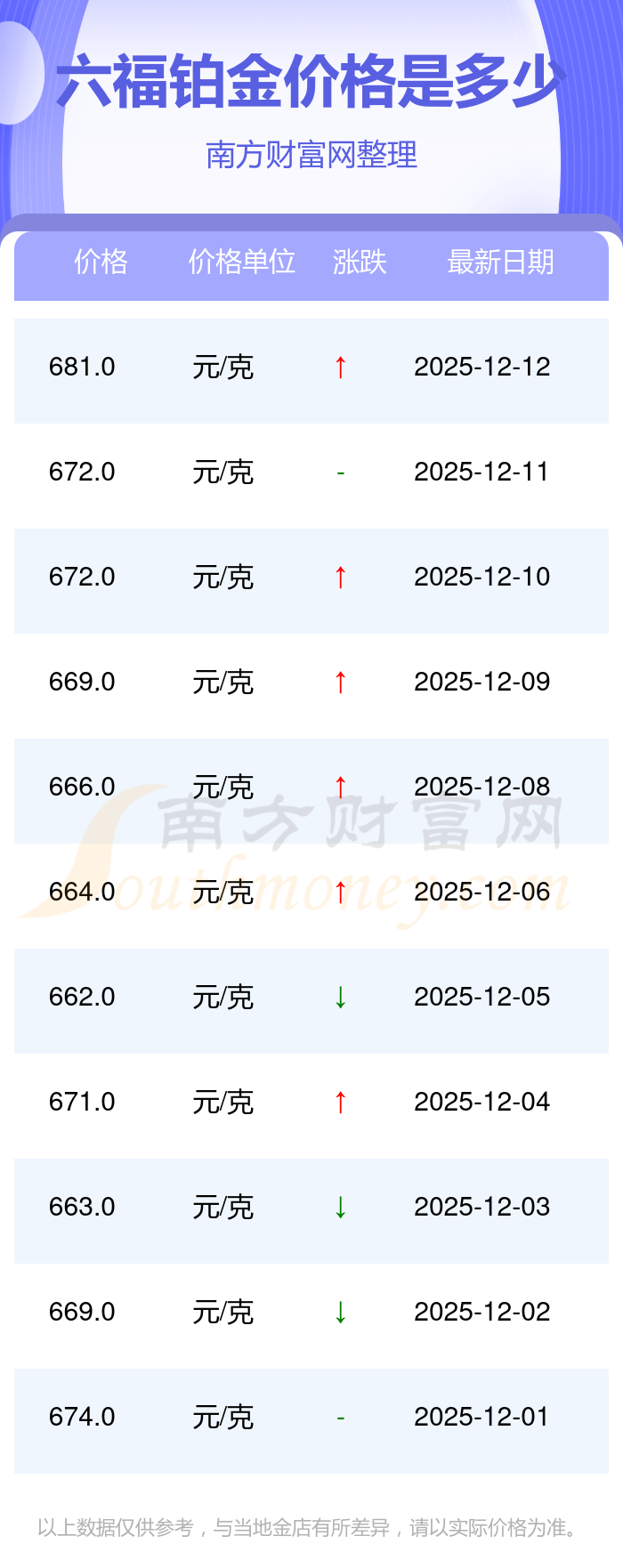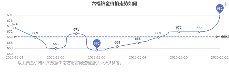 今日六福鉑金價格是681.0元/克。
