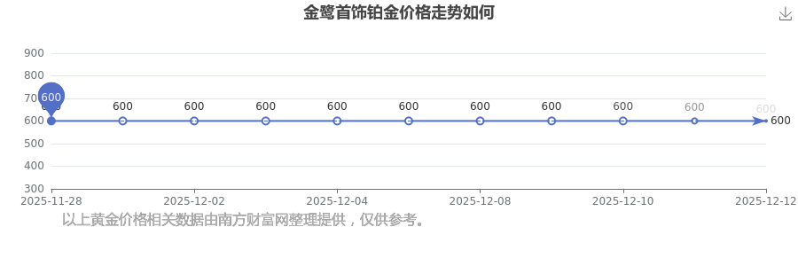 金鷺首飾 鉑金價(jià)格于今日的最新掛牌價(jià)為600.0元/克。