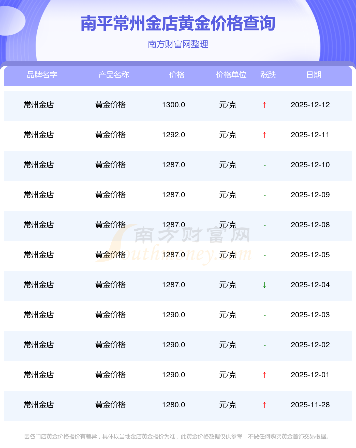 今日南平常州金店黃金價格公布黃金一克的價格為幾何今日(2025年12月14日)南平常州金店黃金價格是1300.0元/克。