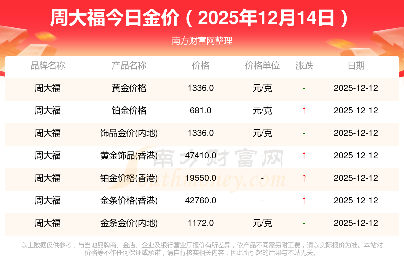 周大福今日金價的具體數(shù)字是怎樣的?數(shù)據(jù)來了:黃金價格1336.0元/克,鉑金價格681.0元/克,黃金價格1337.0元/克,鉑金價格650.0元/克,黃金價格1339.0元/克,鉑金價格600.0元/克,黃金價格1338.0元/克,鉑金價格681.0元/克,飾品金價(內(nèi)地)1336.0元/克,黃金飾品(香港)47410.0,鉑金價格(香港)19550.0。