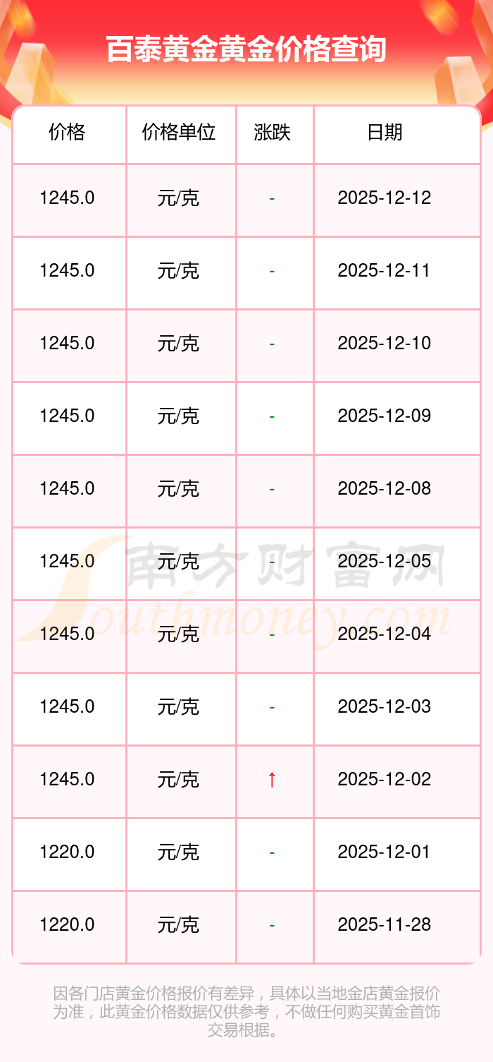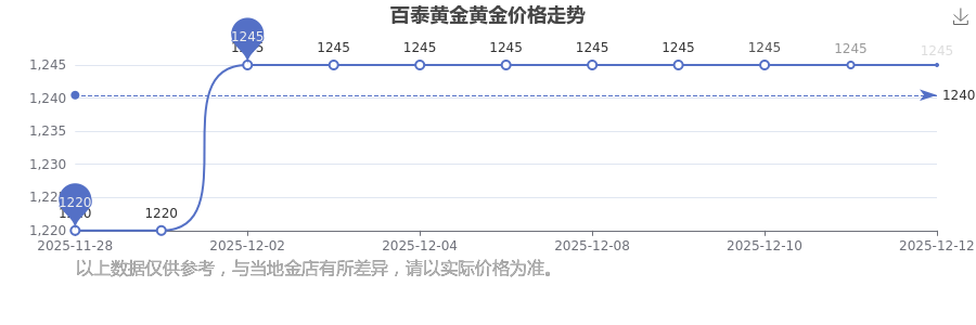 今日(2025年12月14日)百泰黃金黃金價(jià)格為1245.0元/克。