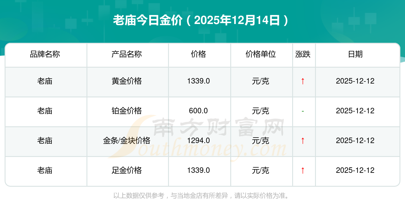 現(xiàn)在老廟黃金價(jià)格是多少錢1克_2025年老廟今日金價(jià)是多少錢一克,最新老廟查詢,2025年12月14日老廟鉑金價(jià)格現(xiàn)在每克多少錢?最新老廟鉑金價(jià)格報(bào)價(jià)公布,一起來看看吧!