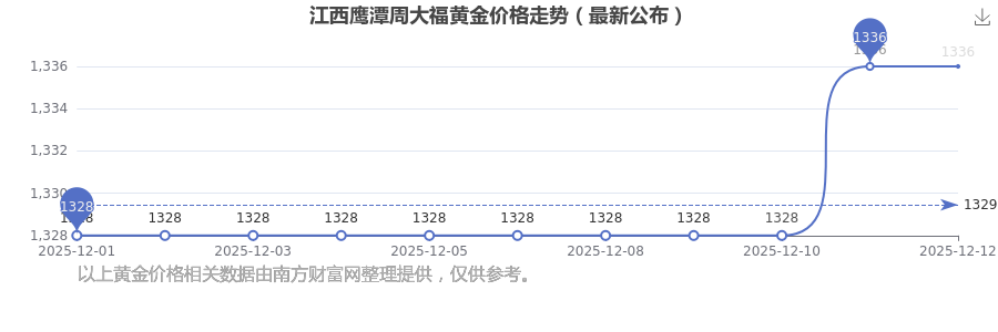 (2025年12月14日)今日江西鷹潭周大福黃金價(jià)格是1336.0元/克。