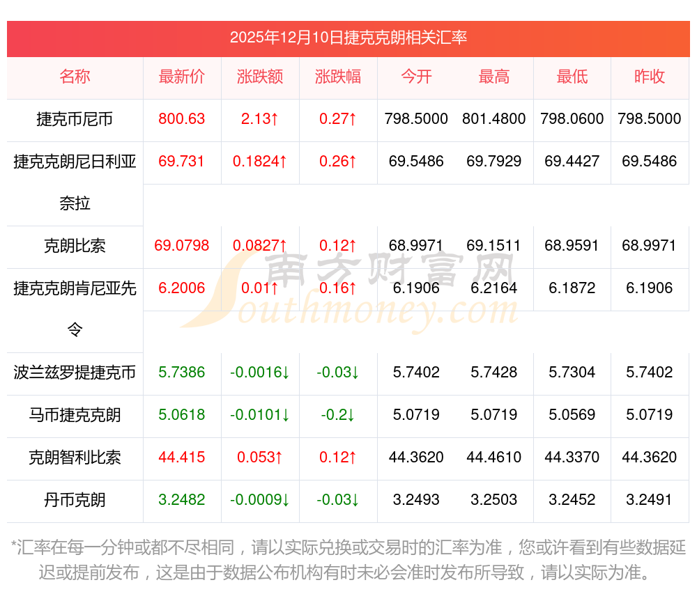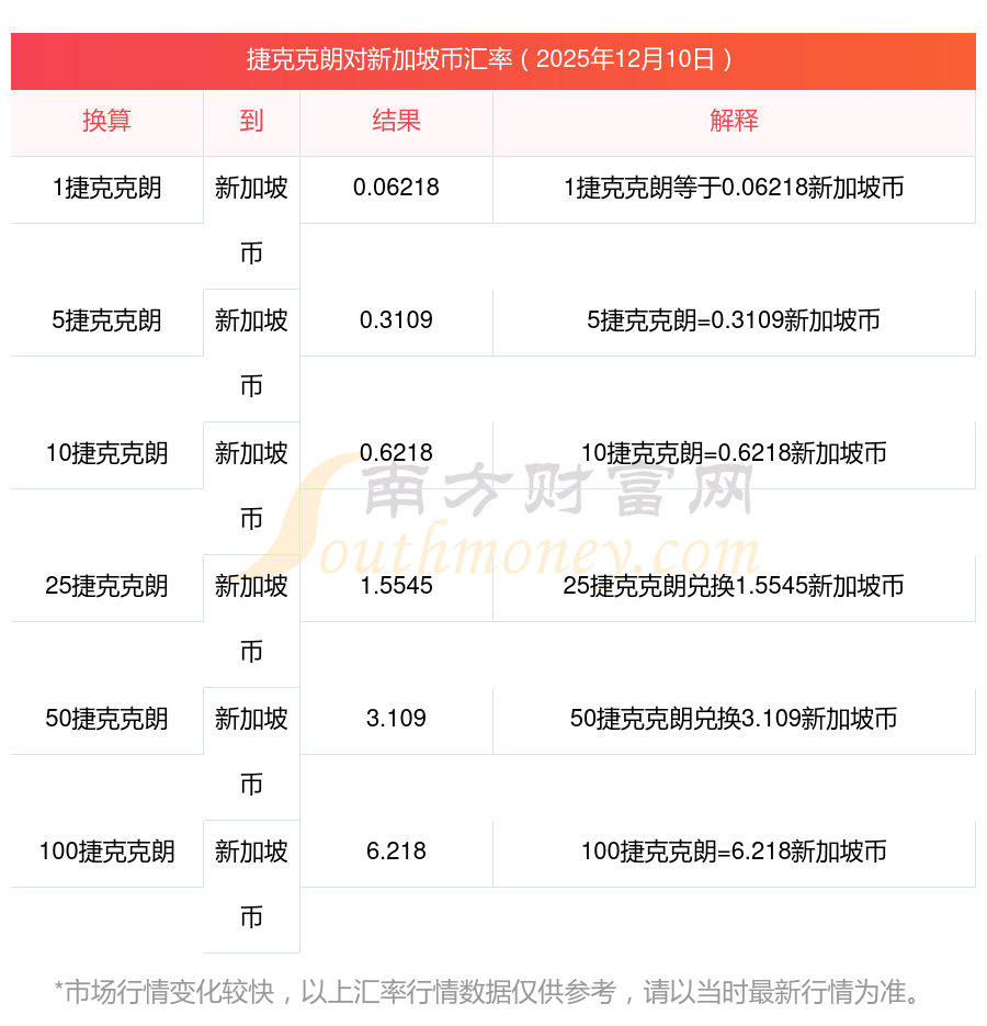 本周捷克克朗匯率如何?捷克克朗對新加坡幣中間價多少?2025年12月10日