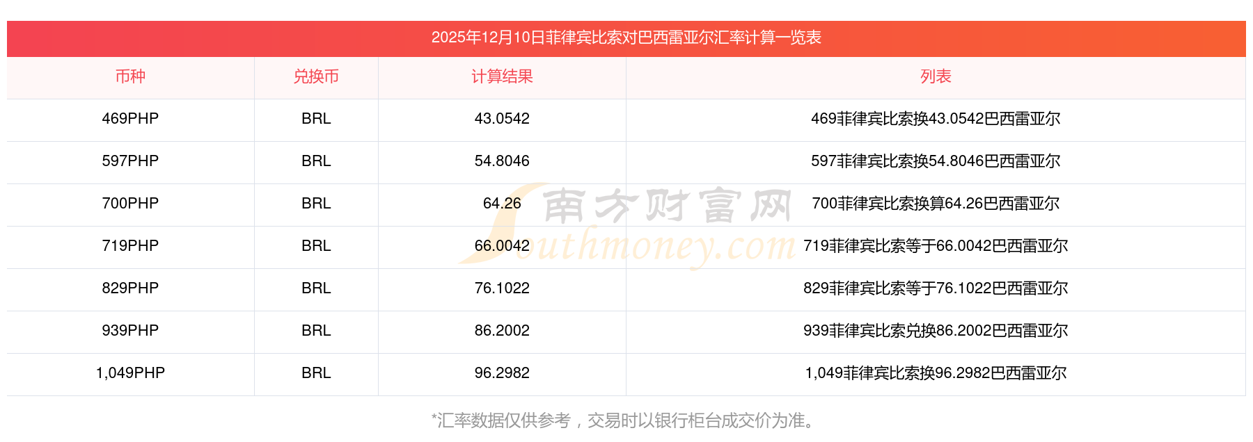 菲律賓比索匯率查詢(xún)—菲律賓比索換巴西雷亞爾匯率多少?2025/12/10