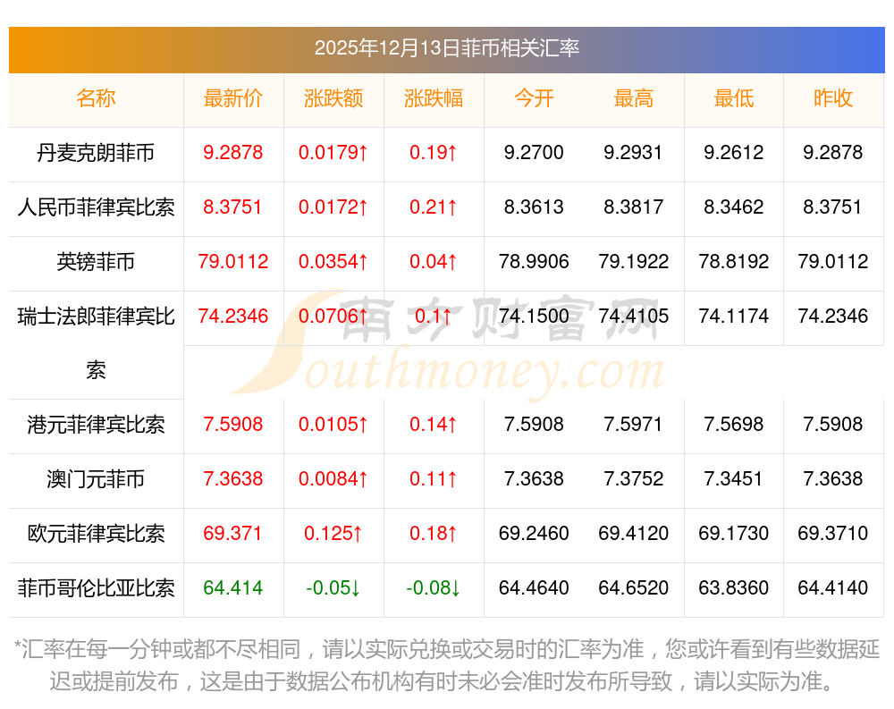 根據(jù)2025年12月13日匯率,菲幣兌換蘭特匯率最新價0.285800,今開價0.2860,昨收價0.2858,最高價0.2864,最低價0.2848。