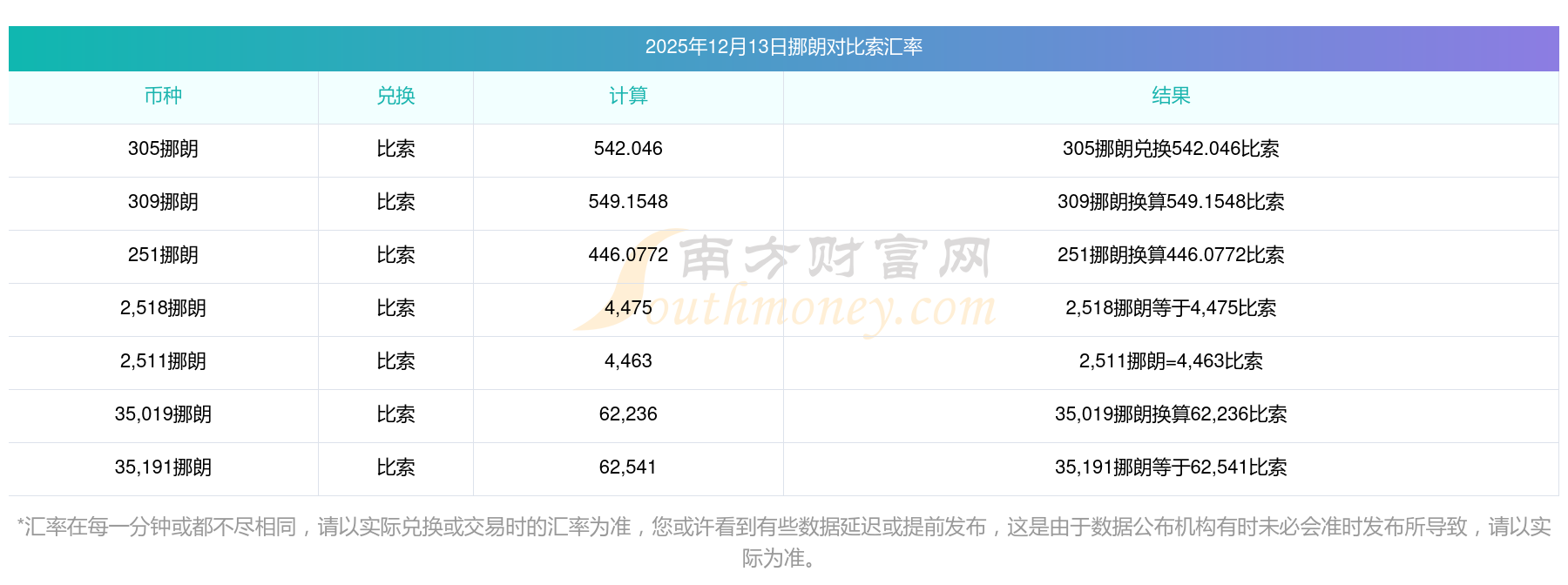 南方財富網(wǎng)為您提供挪朗兌換比索匯率最新價格詳情。