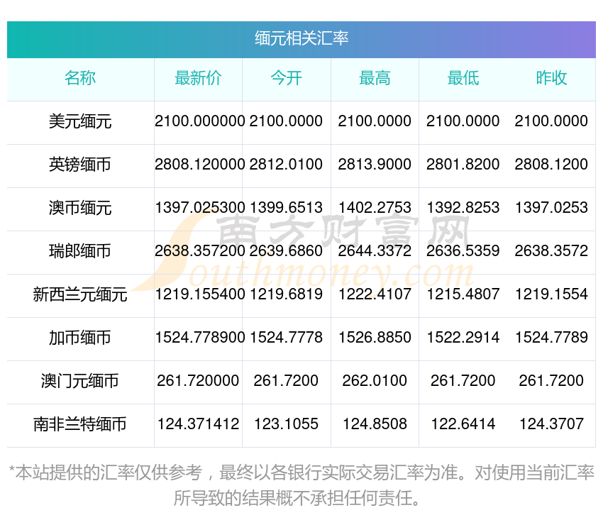 南方財富網(wǎng)為您提供緬元對越南盾匯率最新價格詳情。
