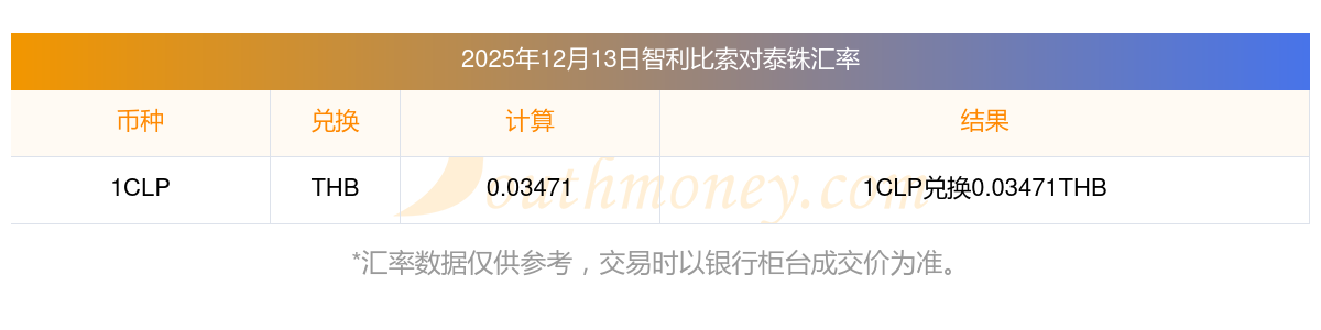 今日匯率 | 智利比索對泰銖今天的匯率多少? 2025/12/13