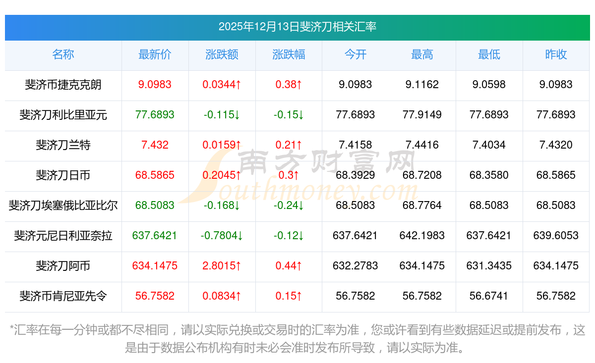 2025年12月13日斐濟(jì)刀相關(guān)匯率查詢