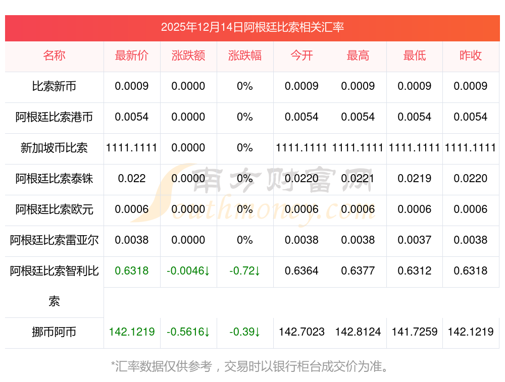 2025年12月14日阿根廷比索相關(guān)匯率查詢