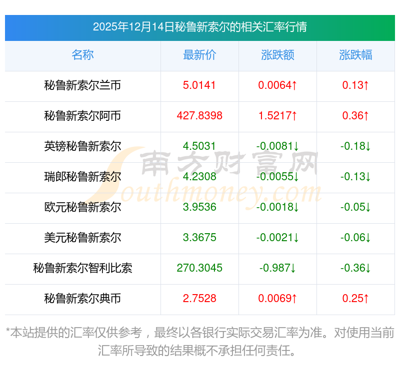 2025年12月14日秘魯新索爾相關(guān)匯率查詢