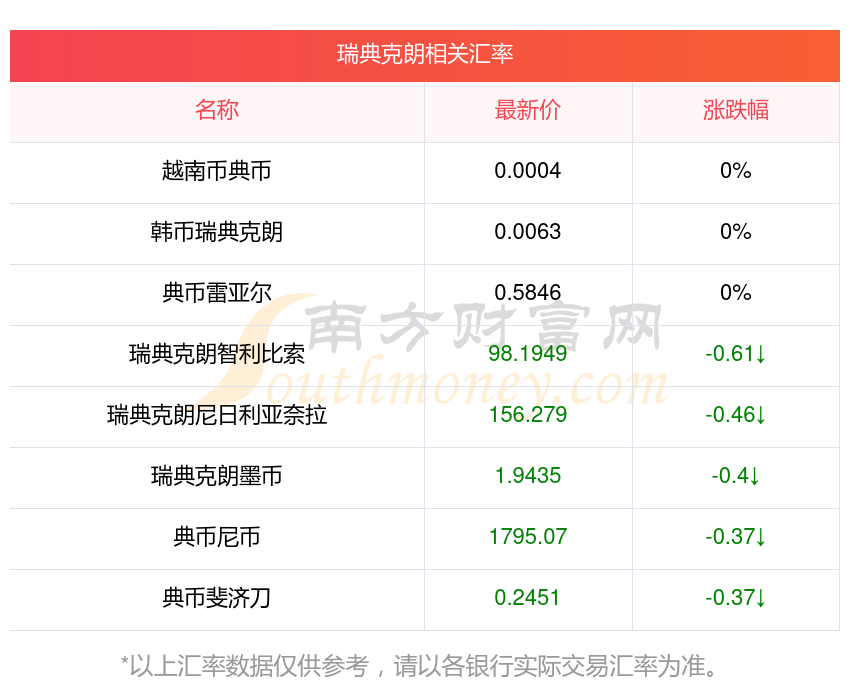 2025年12月14日瑞典克朗相關(guān)匯率查詢