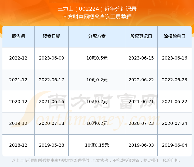 三力士最新一次公布的分紅方案為10派0.5元。本次權(quán)益分派股權(quán)登記日為2023年6月15日,除權(quán)除息日為2023年6月16日,派息日為2023年6月16日。