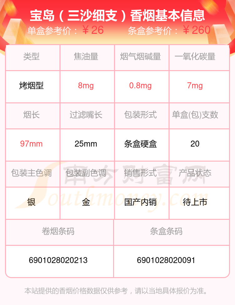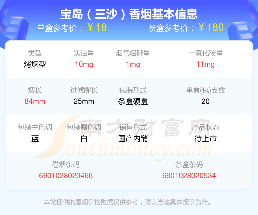 焦油量8至15mg的寶島香煙有哪些?擇煙網(wǎng)為大家整理盤點,有寶島(一品沉香)、寶島(三沙細支)、寶島(金)、寶島(中支)、寶島(天葉國際包日月潭)、寶島(三沙)、寶島、寶島(醇葉)等,詳細價格如下: