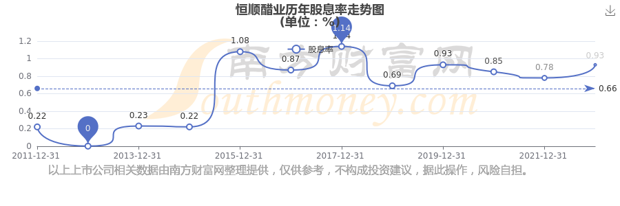 近年恒順醋業(yè)年度股息率走勢如下圖: