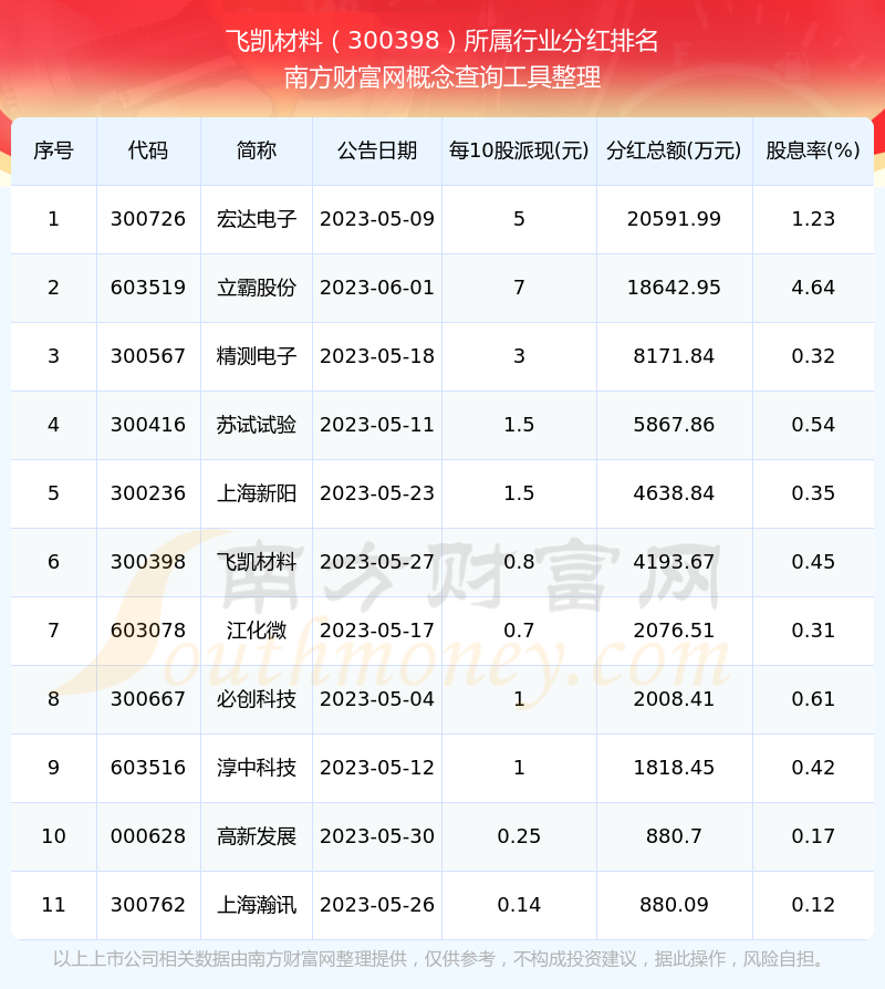 二、飛凱材料300398行業(yè)分紅排名