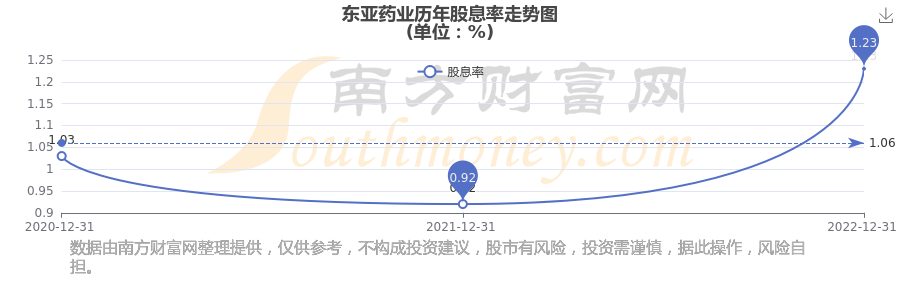 近年東亞藥業(yè)年度股息率走勢如下圖: