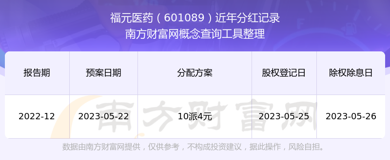 福元醫(yī)藥最新一次公布的分紅方案:10派4元。