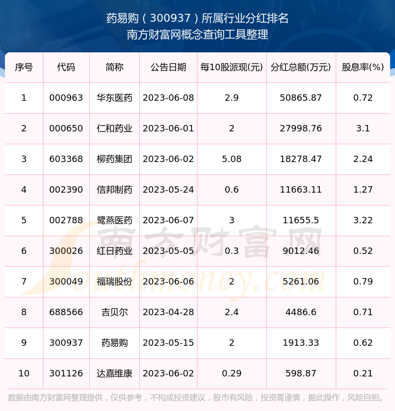 二、藥易購(gòu)300937行業(yè)分紅排名