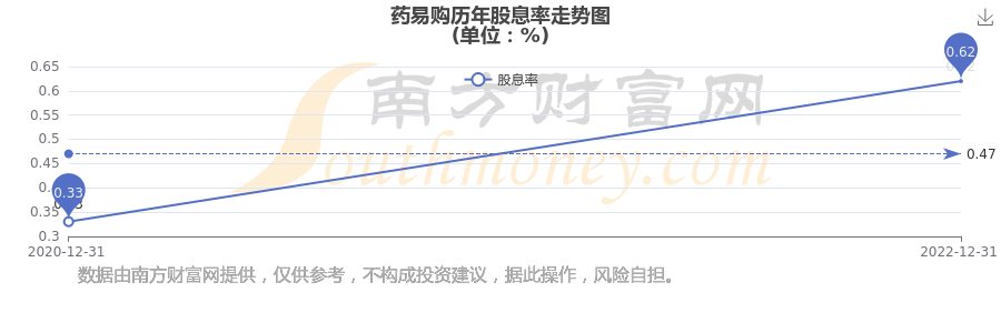 近年藥易購(gòu)年度股息率走勢(shì)如下圖: