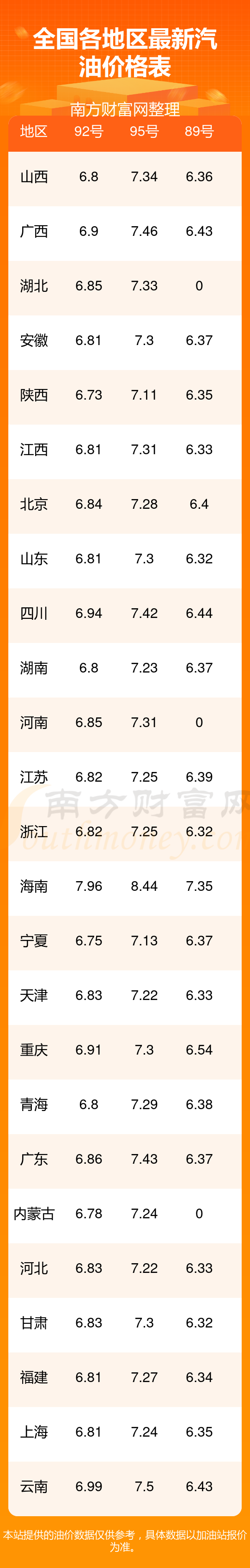 2025年12月14日全國各地汽油價格調整時間及價格一覽表